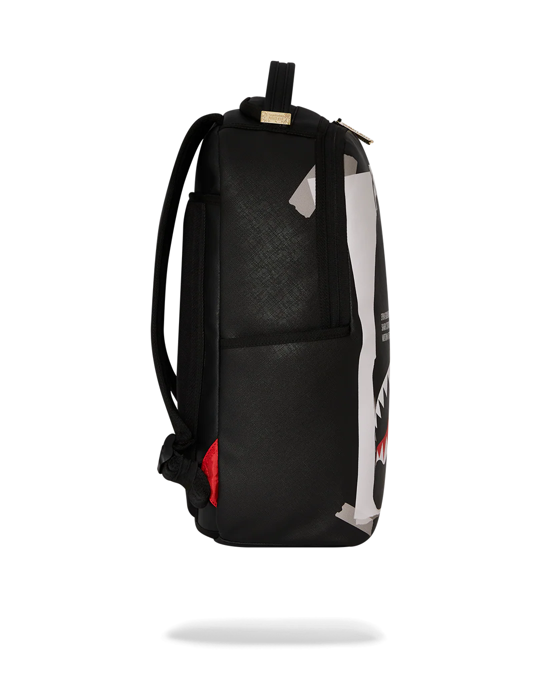 Dimensions: 18" x 6" x 11.5" • Front zipper pocket • Side pockets • Zippered Stash pocket • Separate velour sunglass compartment • Ergonomic mesh back padding • Adjustable Straps for custom sizing • Gold zippers with metal hardware • Metal "Sprayground Authentic" badge • Slide through back sleeve connects to carry-on luggage to free your hands