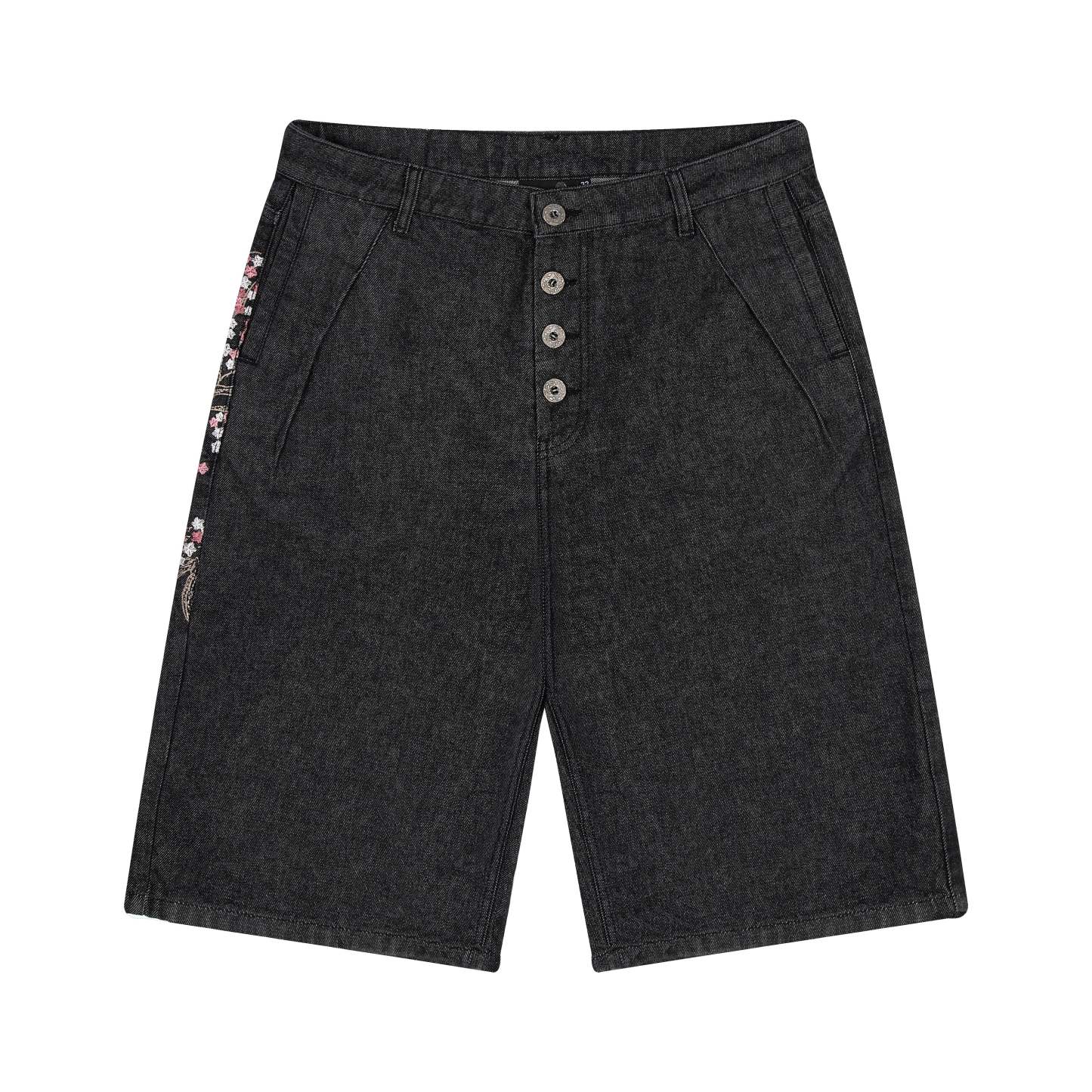 14,5oz raw denim / 100% cotton / embroidery on back / embroidered leather patch / pleats on front / custom buttons / wash inside out / fits true to size