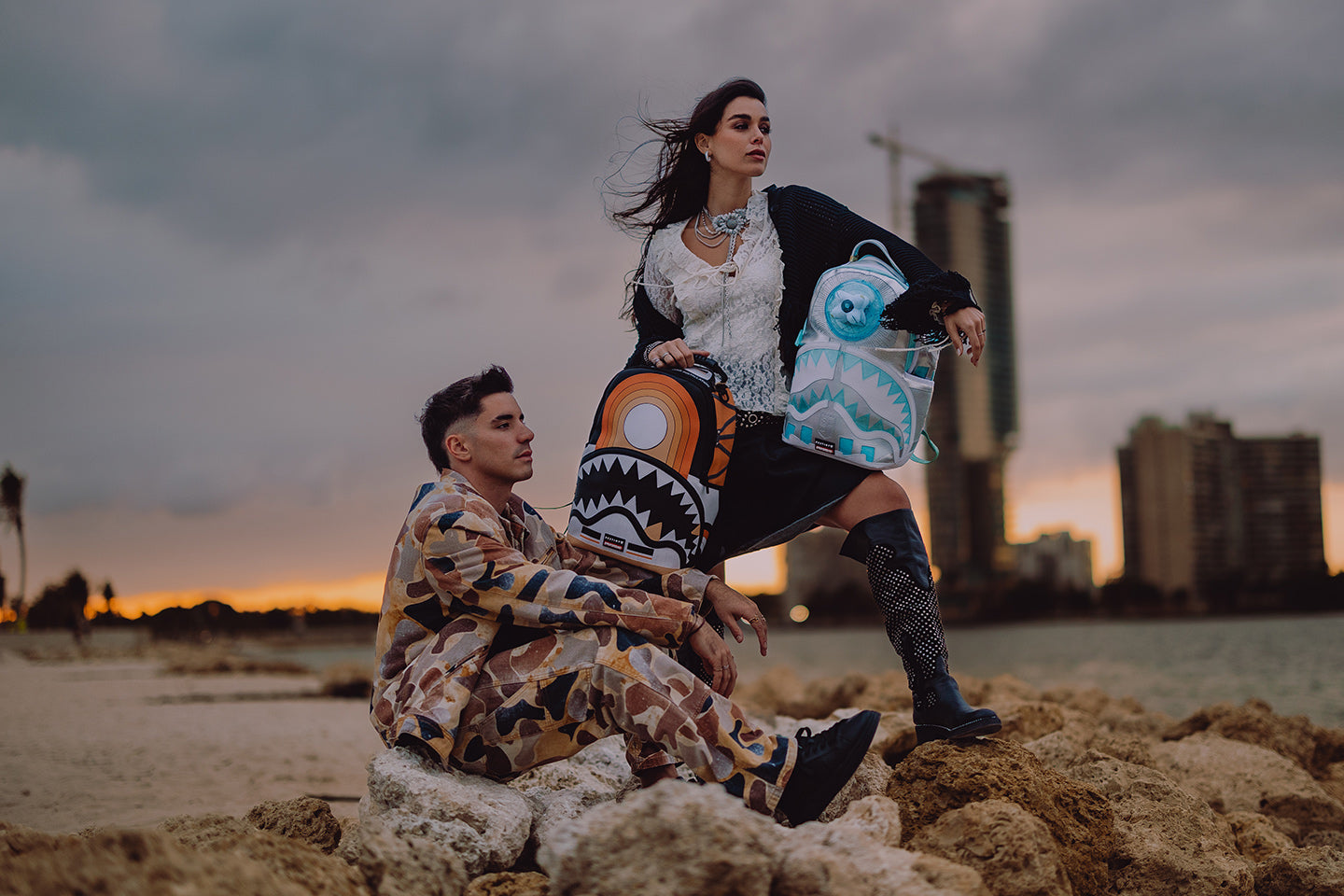 Dimensions: 18" x 6" x 11.5" • Front zipper pocket • Side pockets • Zippered Stash pocket • Separate velour sunglass compartment • Ergonomic mesh back padding • Adjustable Straps for custom sizing • Gold zippers with metal hardware • Metal "Sprayground Authentic" badge • Slide through back sleeve connects to carry-on luggage to free your hands
