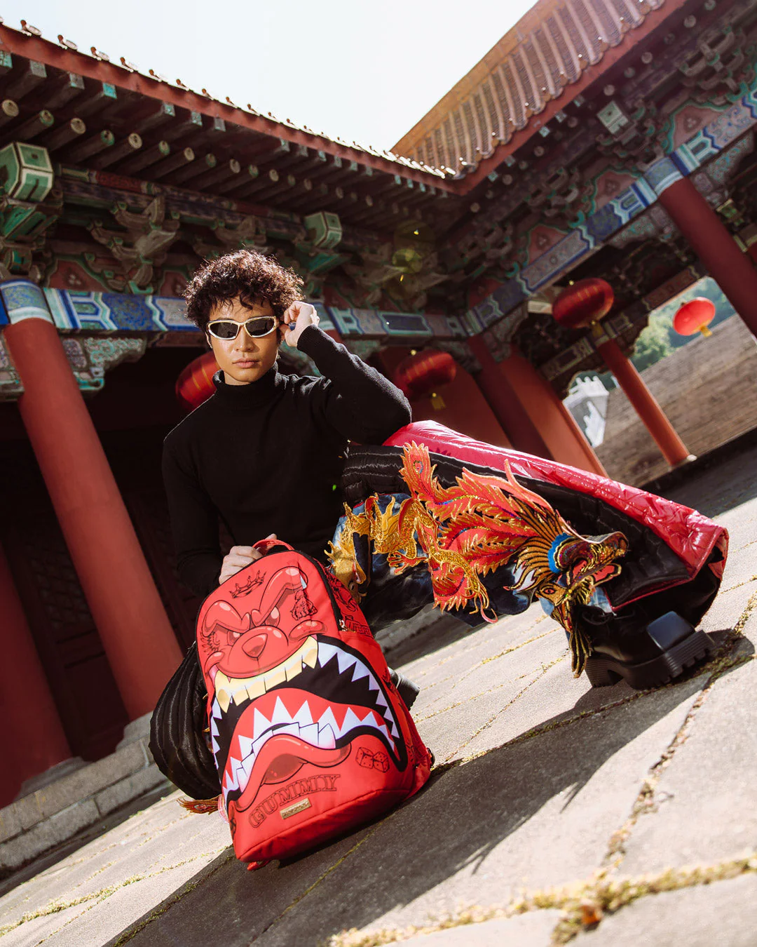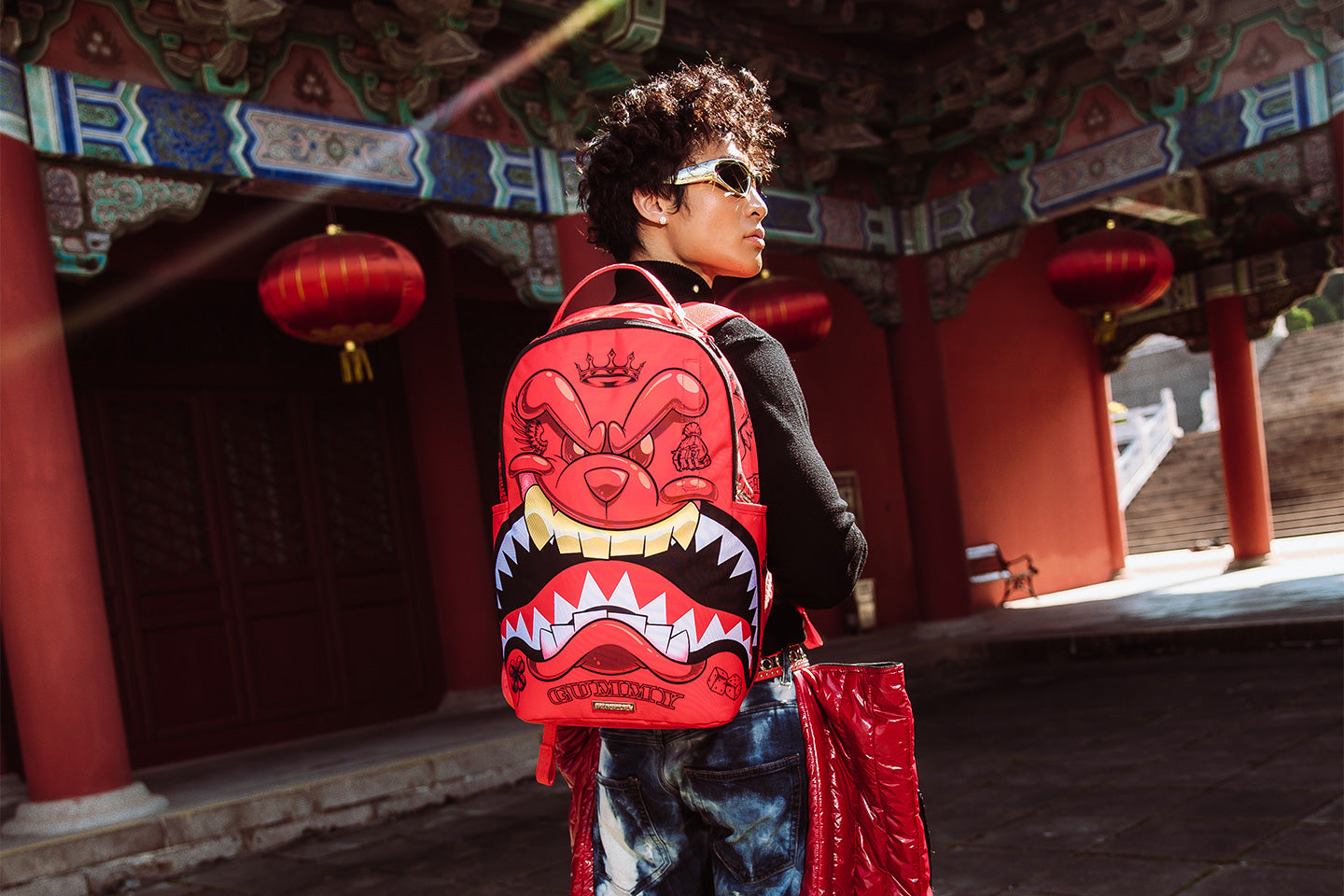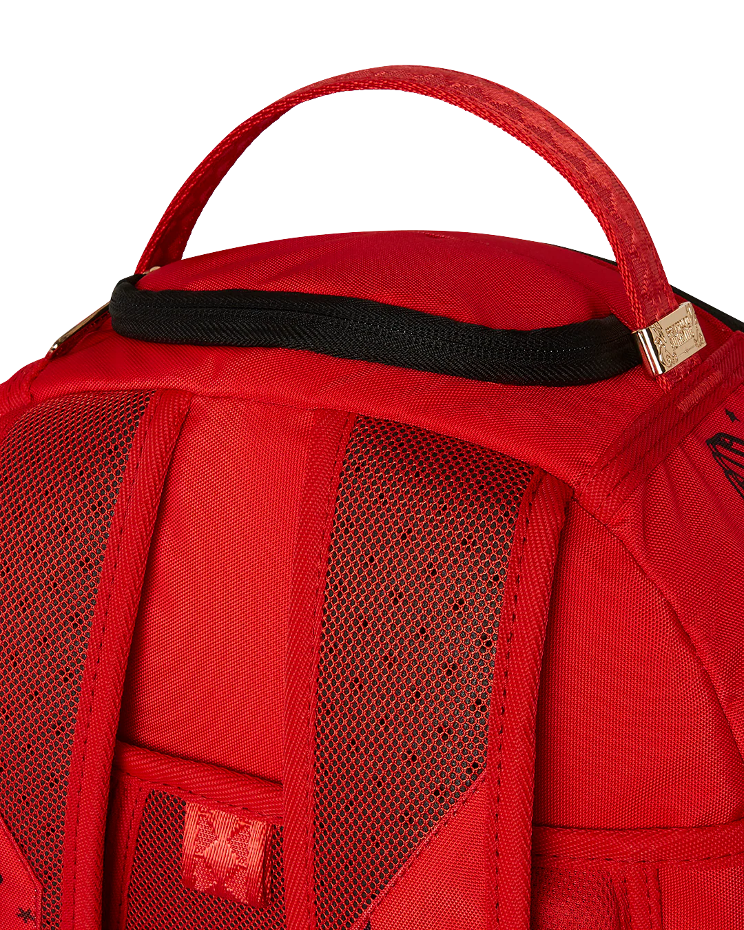 Dimensions: 18" x 6" x 11.5" • Front zipper pocket • Side pockets • Zippered Stash pocket • Separate velour sunglass compartment • Ergonomic mesh back padding • Adjustable Straps for custom sizing • Gold zippers with metal hardware • Metal "Sprayground Authentic" badge • Slide through back sleeve connects to carry-on luggage to free your hands