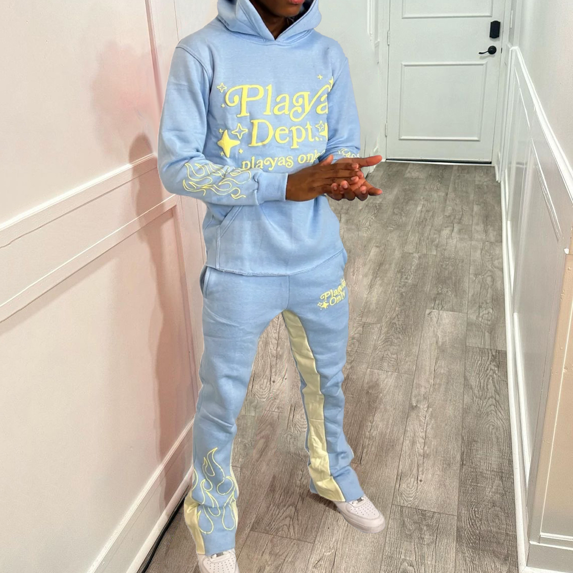 Flame Letter Print Hoodie Sweatpants Two Piece Set