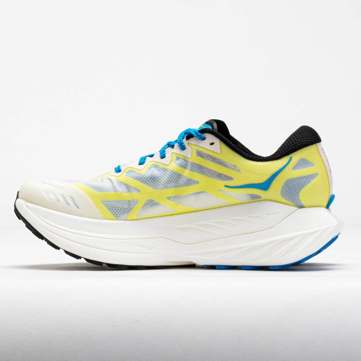 When the trail calls for speed, answer it in the HOKA Rocket X Trail! This off-road racing shoe features an aggressive rocker and H-shaped carbon fiber plate to propel your stride. Stay cool while you blaze the beaten path in the lightweight mesh upper. Cruise gravel road at top speeds under the lightweight, minimal outsole. The responsive, dual-layer midsole provides energy return while the carbon fiber plates propel you forward. Light, fast and grippy, the HOKA Rocket X Trail prevails over rugged terrain!