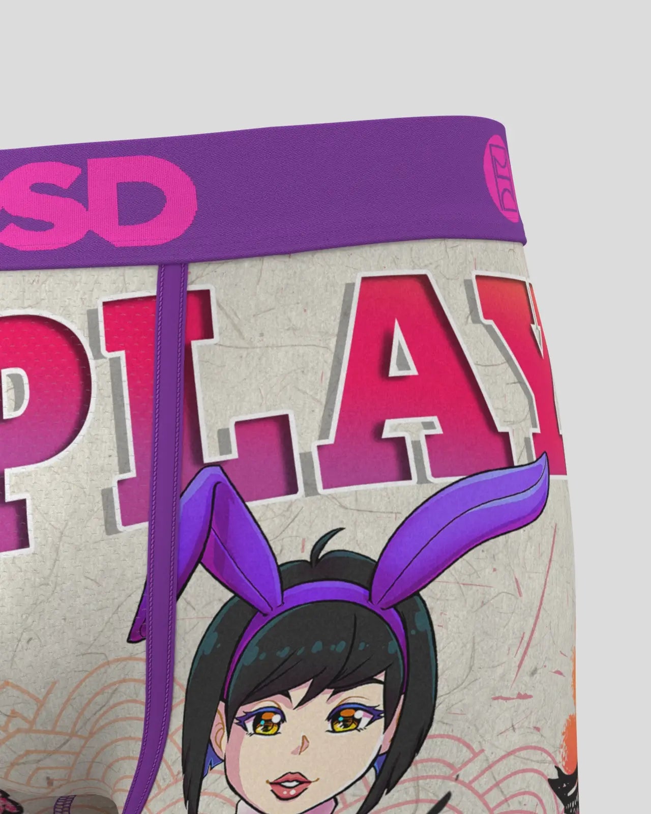 This pair from Playboy x PSD features a Japanese-influenced design with custom anime-inspired Playmate characters. The Rising Sun briefs include our ultra-comfortable Signature WaistBand, a breathable MicroMesh pouch, and four-way stretch. The PSD 7” Standard Length Briefs won't roll or ride and were built for everything, from everyday wear to your toughest workouts. This pair features a metallic branding on the waistband.