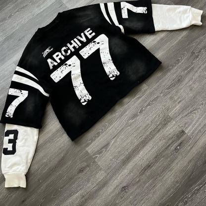 Personalized contrasting digital print fake two-piece sweatshirt