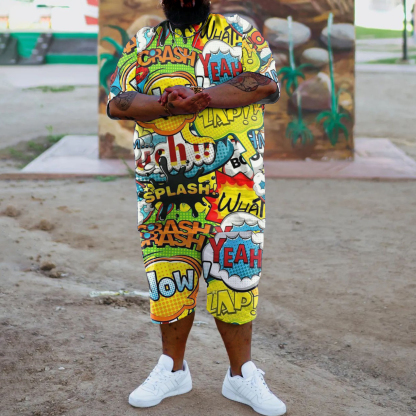 Plus Size Printed Crew Neck Casual Short Sleeve Suit