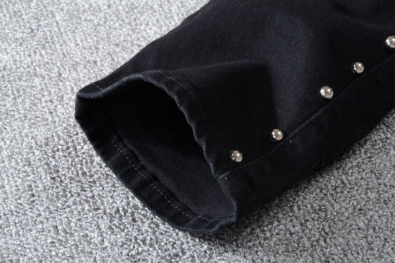 Balmain Jeans Distressed Black Studded Slim Straight Pants