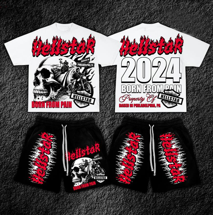 Hellstar Skull 2024 Graphic T-Shirt And Shorts Set