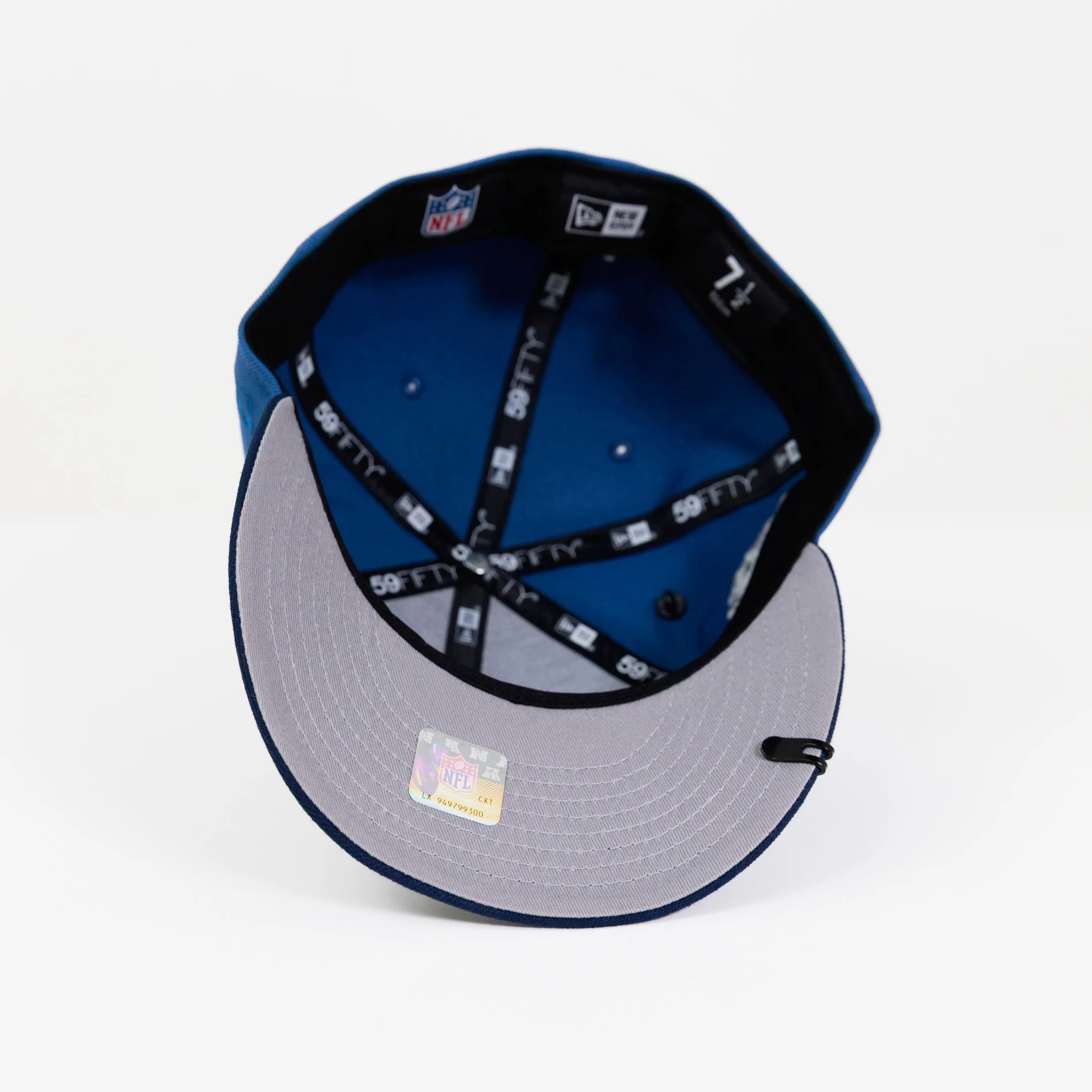 NEW ERA EXCLUSIVE 59FIFTY COBALT BLUE/ NAVY SAN FRANCISCO "49ERS" SCRIPT W/ DRAFT SIDE PATCH